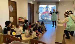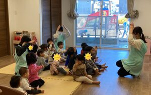 最初にみんなで「どんぐりころころ」の歌や「やきいもグーチーパー」の手遊びをしました。