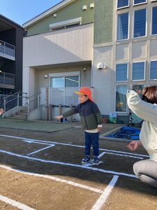 クモの巣的当ては、ゴムのついたコップでボールを飛ばしてクモの巣にくっつけます。ボールがよく飛んでおもしろかったですね❣