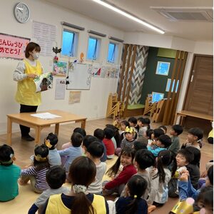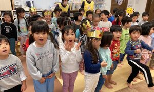 誕生会の最初に、みんなで「とんぼのめがね」を歌いました😊みんなトンボになりきって楽しそうです💕