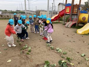 のぞみ組はお芋に興味津々!お芋のつるを引っ張れました。