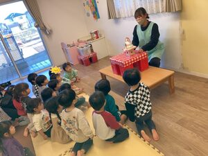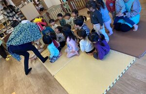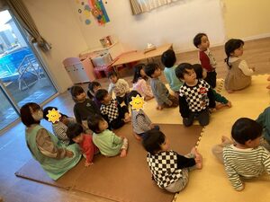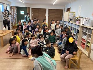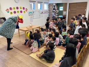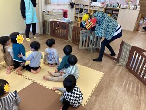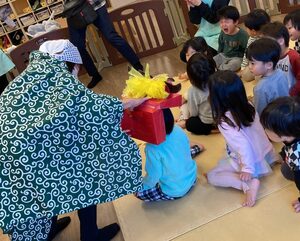 ちょっとびっくりしたお友達もいましたが、獅子舞に頭をぱくっとされても大丈夫な強いのぞみ組とみのり組のお友達もいましたよ😄