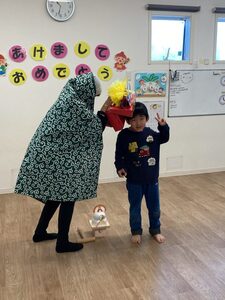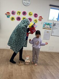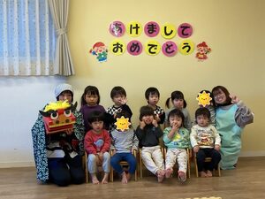 2階のお部屋にも獅子舞が来てくれました。みんなうれしそうです😊
