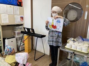 12月の誕生日のお友達は1人でした。みんなの前に出てうれしそう💕