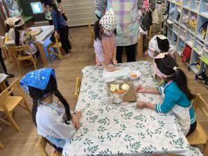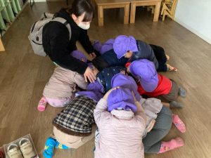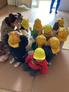 全員、園庭に集合出来ました。みんなお話をせずに避難出来ました。