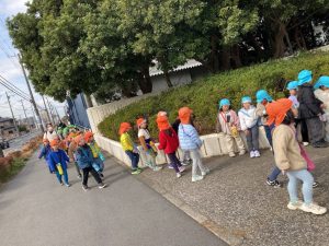 3・4・5歳児は、奈良輪小学校までです。みんな速足にしっかりついていけています。