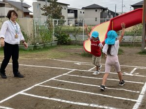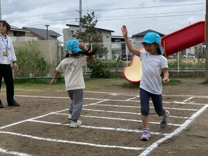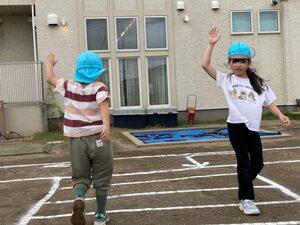 みんなで約束を確認したら、園庭に作った道路を歩いてみました。