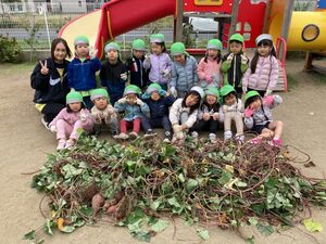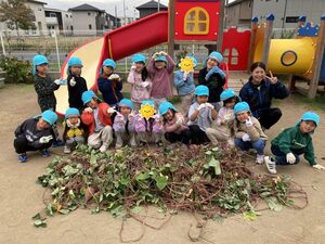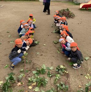 ひかり組が長いつるを引っ張るとあっという間に切れてしまいました。お芋強かったね😊