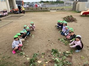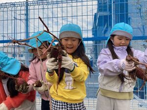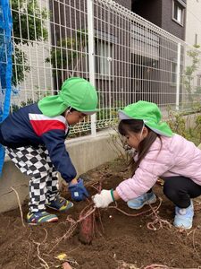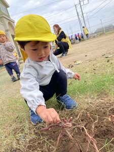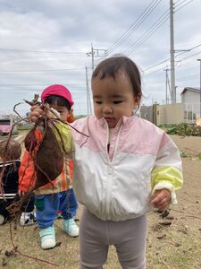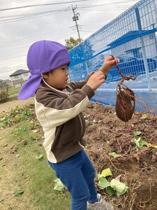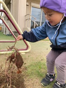 のぞみ組はお芋に興味津々!お芋のつるを引っ張れました。