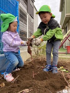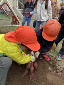 ひかり組は、下の方にあったお芋もがんばって手で掘ってくれました。