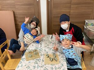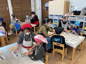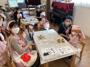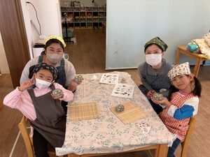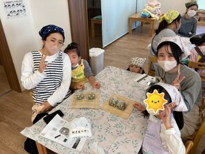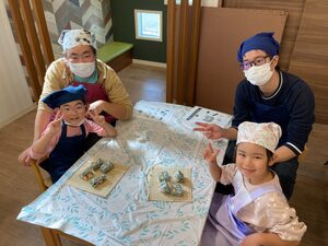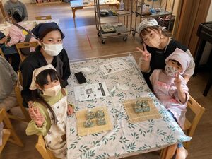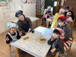 お寿司を切ってかえる顔が見えるとみんな「かわいい❣」と大喜びでした😊