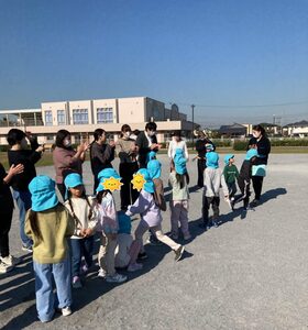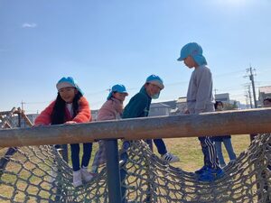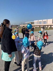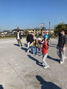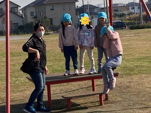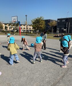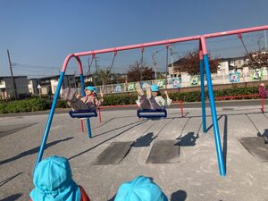 今日は、穏やかな天気でお散歩は気持ちがよかったですね。公園では遊具で遊んだり、ドッチボールをして楽しかったですね。