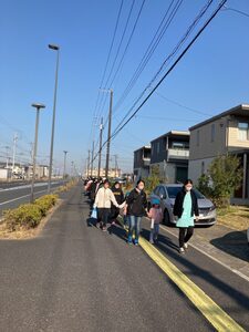 おうちの人と一緒に近隣公園へお散歩です❣おうちの人と一緒に手をつないでみんなニコニコ😊足取りが軽いですね。
