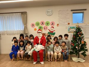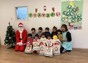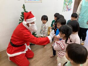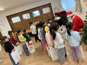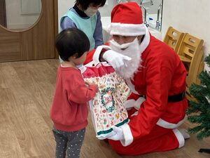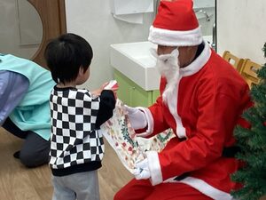 一人ずつサンタさんからプレゼントをもらいました。すっかりサンタさんと仲良しになれましたね😊
