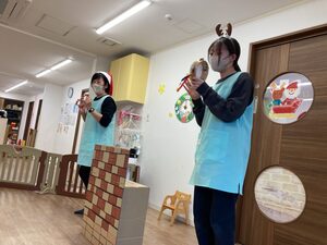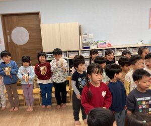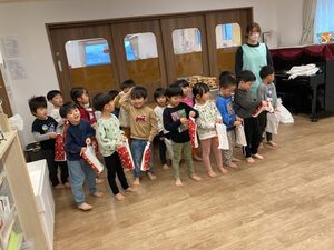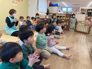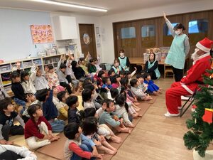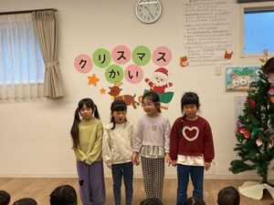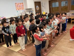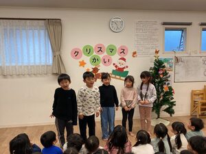 みんなで「あわてんぼうのサンタクロース」のうたを歌いました。みんなこの歌が大好きで手拍子をしながら上手に歌えていましたよ😊