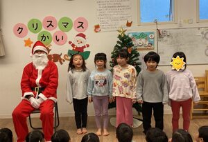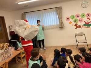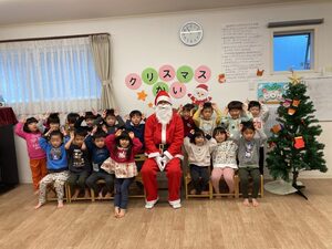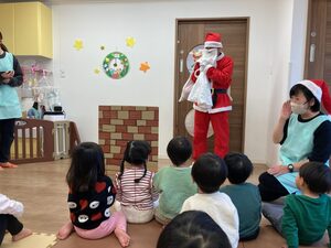 みんなで「サンタさ~ん❣」と呼ぶと、お部屋にサンタさんがやってきてくれました。