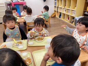 のぞみ組は、たくさん遊んで給食のカレー🍛をたくさん食べました。