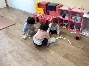 めばえ組は、お部屋の中で仲良くおままごとや体操をして遊びました。