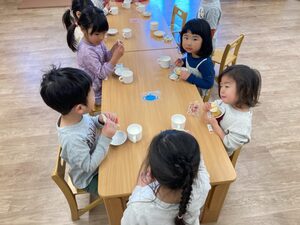 つばさ組は、久しぶりのみんなでおやつ。お話が弾みます❣