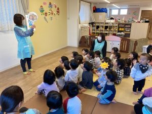 0・1・2歳は、節分のお話を聞きました。