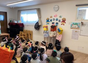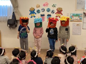 節分の由来のお話を聞きました。みんなとっても良くお話をを聞いています。