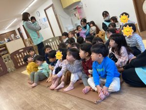 はじめに「ぼうが1ぽん」の手遊びをしました。みんな楽しそう💕