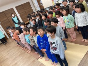 3・4・5歳児の誕生会では、1年間ひかり組さんが、はじめとおわりの言葉とインタビューをやってくれました。みんなの前に出てしっかりとやってくれましたね。 ひかり組さん 1年間ありがとうございました💕