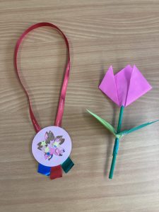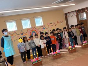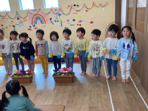 最後にひかり組につばさ組、かける組からプレゼントを渡しました。つばさ組からは、折り紙で作ったちゅうりっぷです🌷