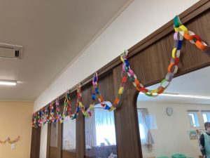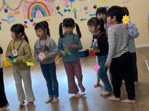 卒園するひかり組さんの為に歌や合奏を練習してきました。お部屋にも折り紙で作った飾りで可愛らしく飾りつけをしましたよ。