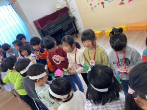 「ひかり組には内緒だよ!」と、つばさ組とかける組でお別れ会の準備でしてくれました。ひかり組のみんなが喜んでくれて楽しいお別れ会になりましたね。