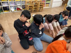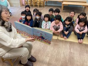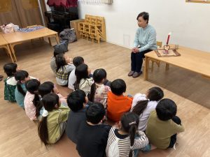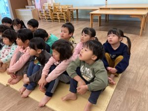 いつも素敵なお話を聞かせてくれるので、つばさ組の子ども達は興味津々で聞いています。