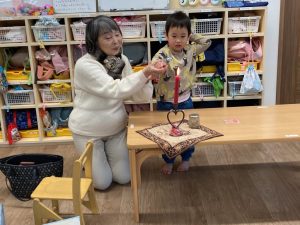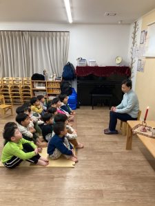 月に一回ボランティアの方が来て下さり、たくさんお話をしてくれました。お話の前にはロウソクつけてお話の始まりです。