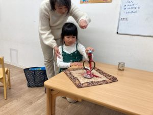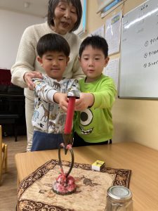 かける組は、ロウソクの火をお当番さんが消してくれました。