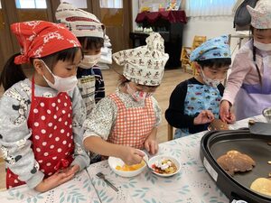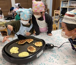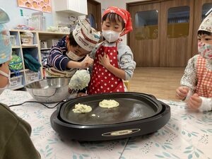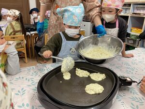 昨日はひかり組が食育活動でホットケーキ作りをしました。
