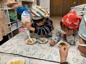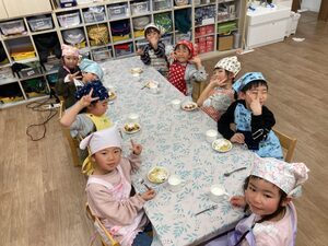 みんなでいただきま~す😊「おいしいね💕」「また作りたい❣」と話しながら食べました。