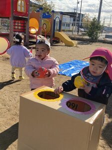 作ったボールを箱の中に入れていきます。穴の中に入れられたかな❓
