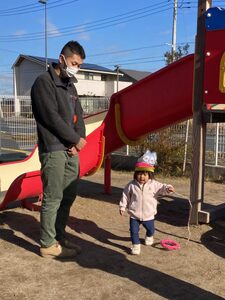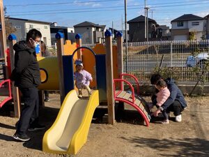園庭の遊具でも遊びました。みんなで仲良く滑り台❣