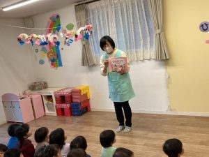 はじめに「ぼうが1ぽん」の手遊びをしました。みんな楽しそう💕