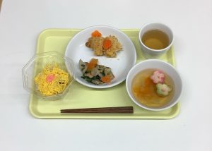 給食ではちらし寿司、おやつにはひな祭りケーキが出ました。美味しかったですね😊